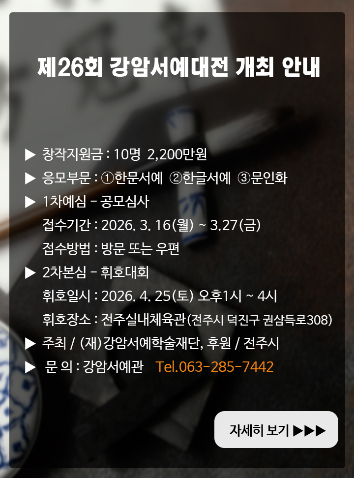 제26회 강암서예대전 개최 안내